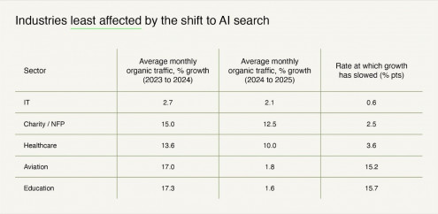 The Google AI Search Shift Report by digital marketing and PR agency Tank analyses website traffic across 800 companies in 16 different sectors before and after the rollout of Google AI Overviews and AI Mode, to identify which industries are most and least impacted.