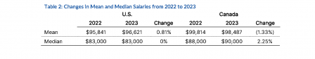 Changes in Mean and Median Salaries from 2022 to 2023 | Credit: "2024 AFP Compensation and Benefits Report" by AFP