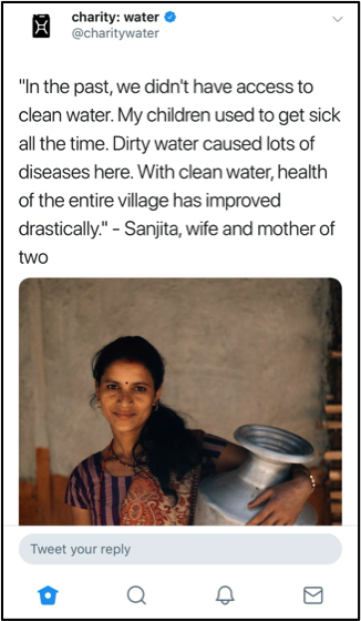 Back to our example of the charity: water tweet above, it’s not just the fact that Sanjita didn’t have clean water that looked and tasted bad. It’s that the dirty water caused her children to get sick and led to disease in her village. This explanation creates empathy in me, the donor. I know how awful it is when my kids are sick and how I want to do anything I can to help them feel better.