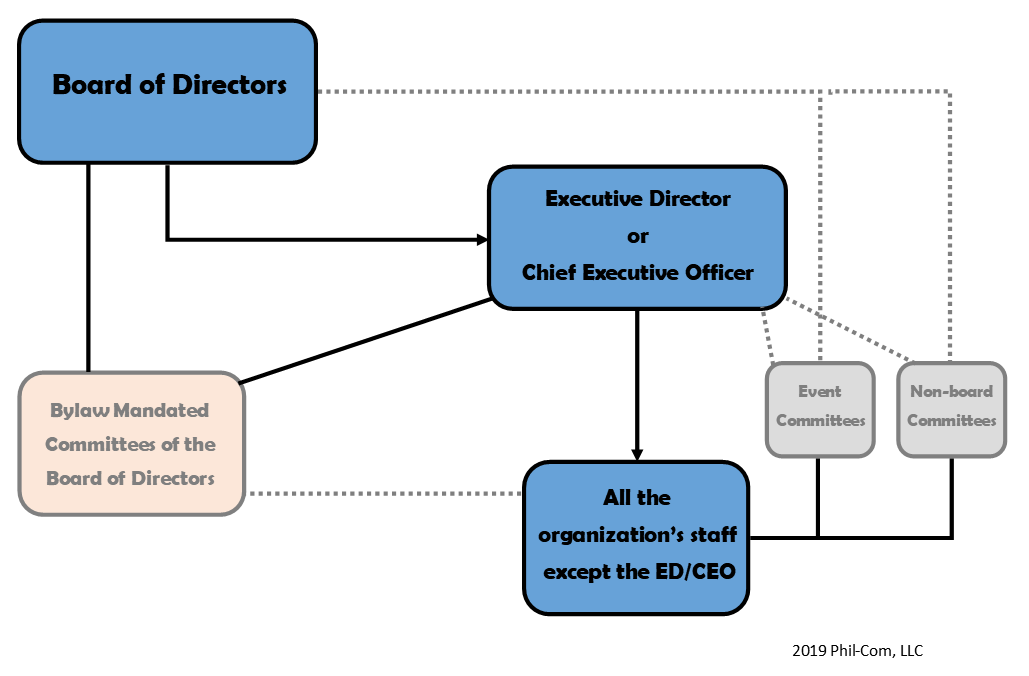 One look at Figure 2 and you can see that the additional relationships and reporting structures in nonprofit operations could complicate even the simplest of tasks. When we start with staff and add in boards of directors, whose members rotate through every few years (executive positions likely rotate annually or every two years); committees of the board; and other types of committees, such as events, community ambassadors and program delivery, we’ve created a web sticky enough to snag communication at every turn. That is why it is exceptionally important for nonprofit organizations to have strong cultures of communication that begin at the leadership level.