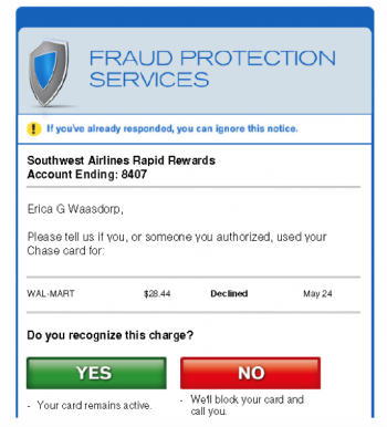 There it was: a text and an email message from my credit card company. Someone was trying to use my card in a different state!